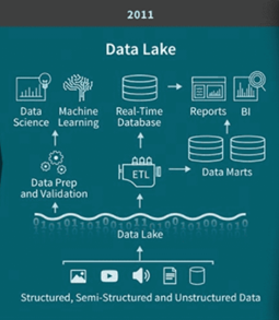 As pesquisas em tecnologia levaram ao conceito do Big Data e às plataformas open-source como o Hadoop visando o armazenamento e processamento distribuído de um grande volume de dados. O Hadoop especialmente permitiu o surgimento do Data Lake partir de 2011.