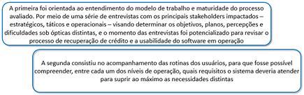 Já na frente de substituição de software foi necessário passar pelo levantamento de requisitos macro, funcionais e não funcionais, cerca de 130 requisitos, para viabilizar a elaboração, divulgação para mercado e avaliação de RFP (Request for Proposal). Para tecer a recomendação com base nos resultados evidenciados pela RFP foram construídas métricas comparativas, as quais também foram aplicadas para a avaliação de customização de software de mercado e o desenvolvimento de software próprio.